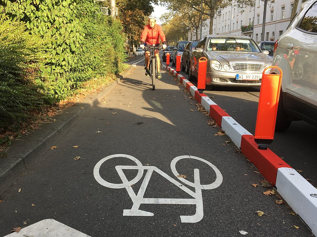 Oft – gerade im innerstädtischen Bereich – grenzt der Fahrradweg direkt an die Fahrbahn an.