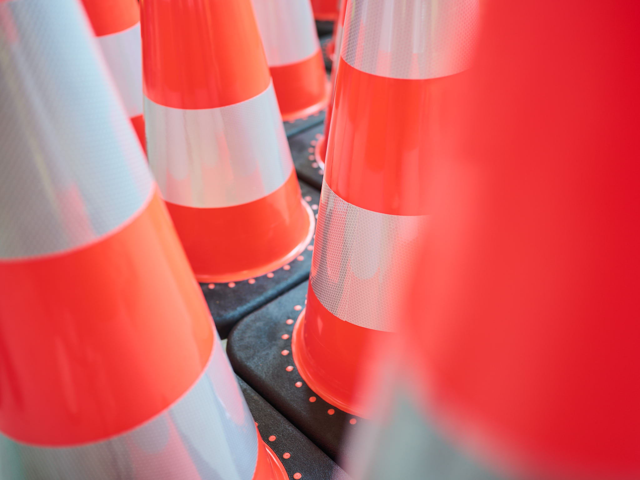 Pollervielfalt zur Führung, Orientierung, Abgrenzung und Sicherung: Absperrpfosten, Absperrketten, Leitkegel.