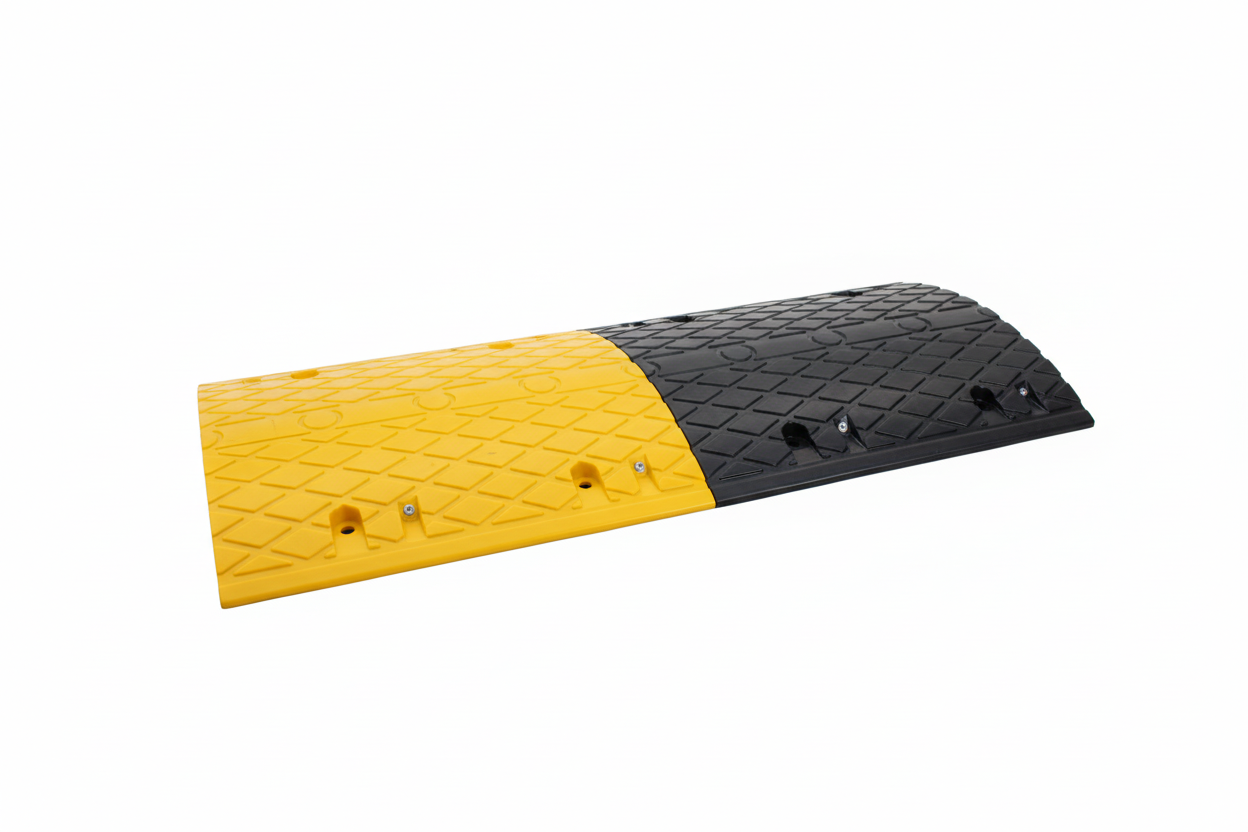 Fahrbahnschwellen aus recyceltem Gummi zur Verkehrsberuhigung und Geschwindigkeitsreduzierung in öffentlichen und privaten Bereichen.